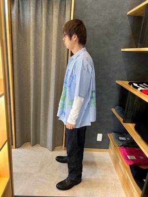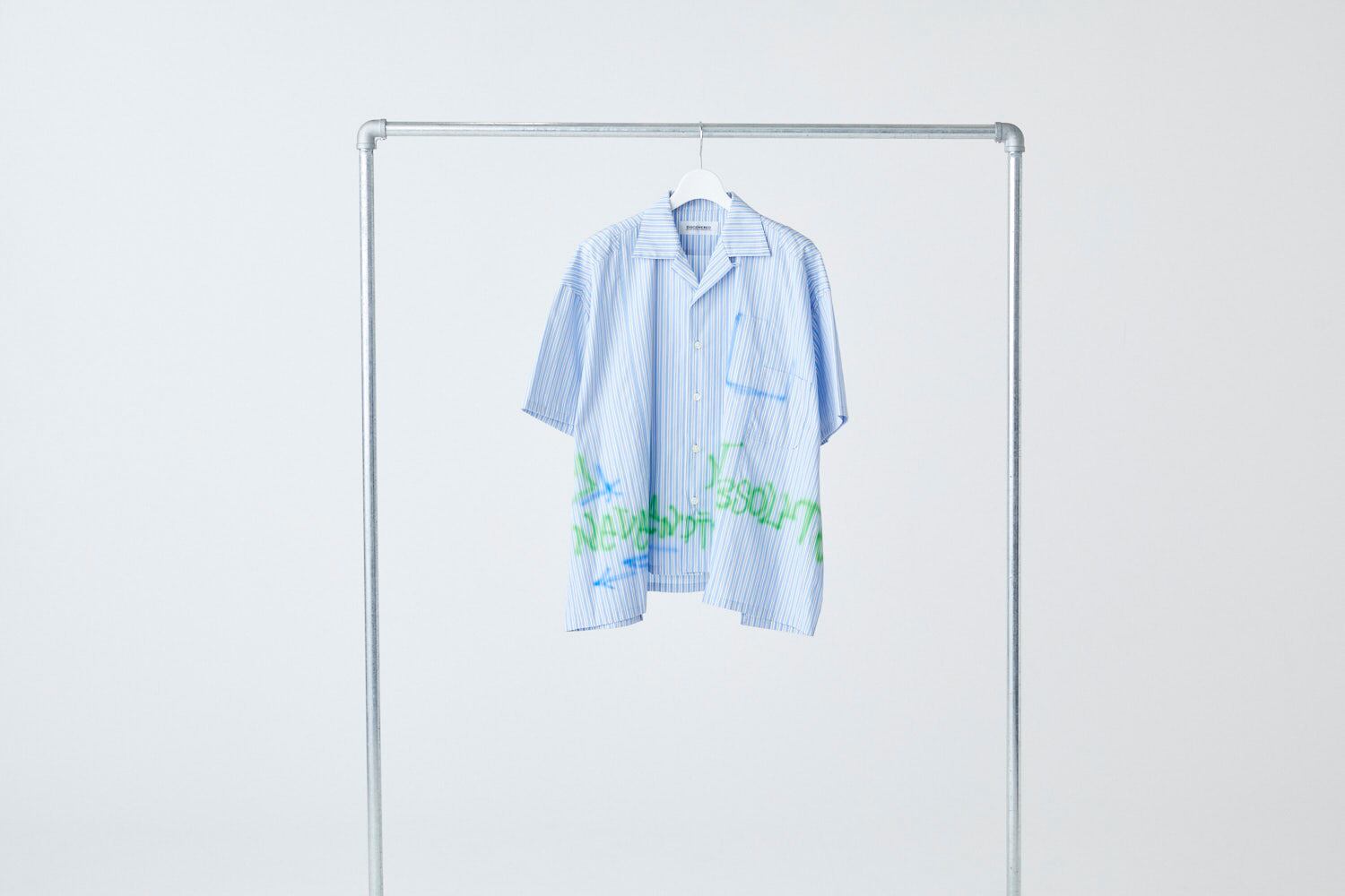英国王室御用達 THOMAS MASONの生地を使用した半袖シャツ。控えめに施されたエアブラシペイントとワイド切り替えデザインが特徴的です。