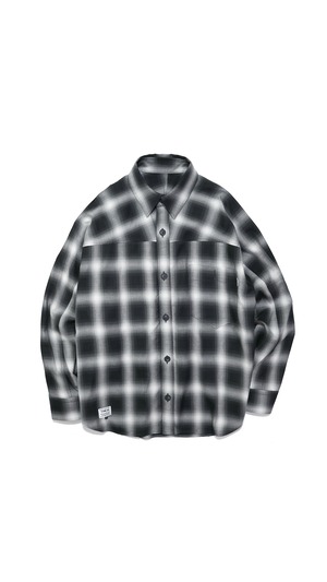【elephant TRIBAL fabrics エレファブ 】CIRCLE YOKE SLEEVE OMBLRE CHECK SHIRT BLACK