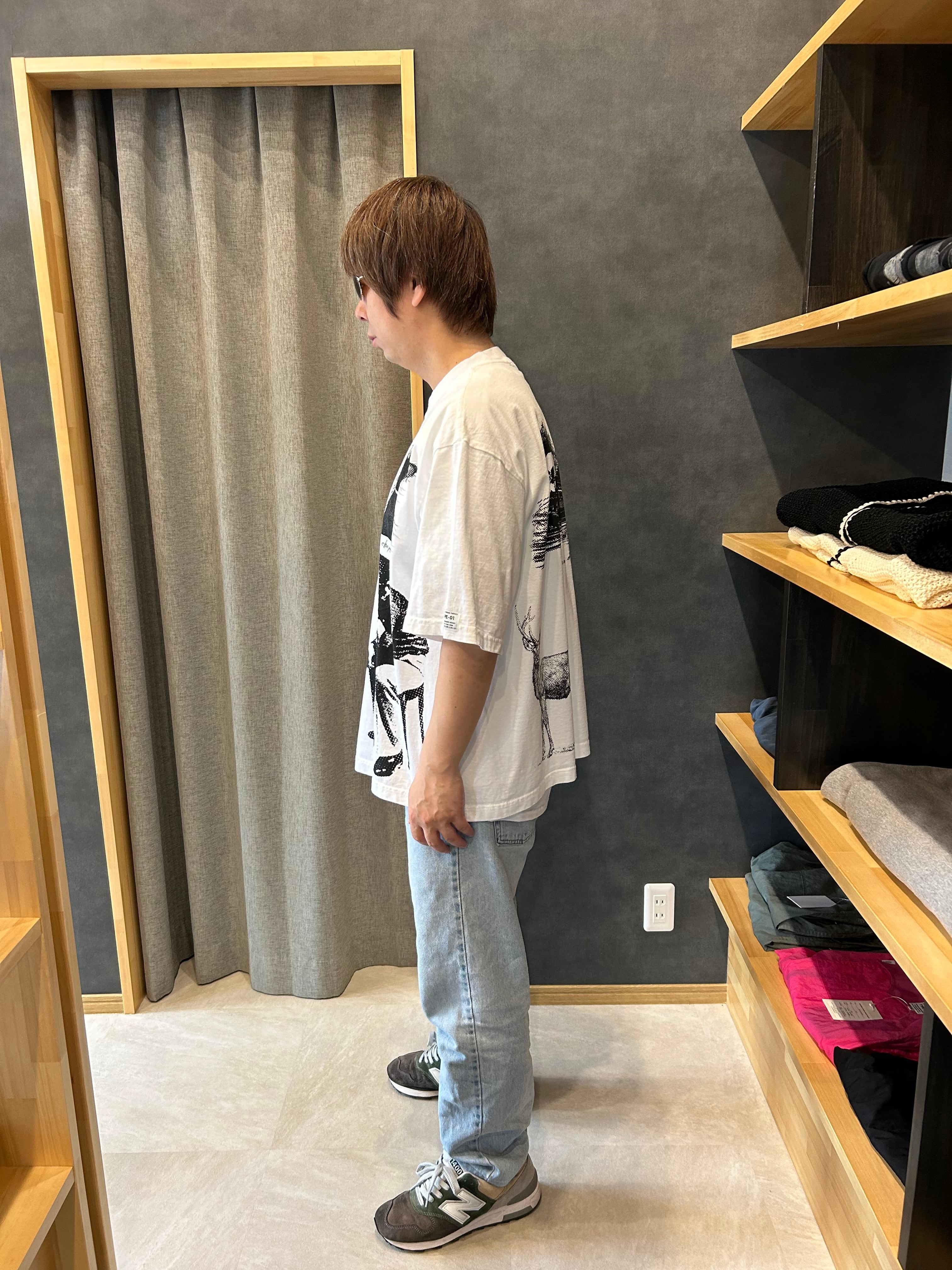 ゆったりとした身幅、短めな着丈のボックスシルエットにヴィンテージの風合いを出す為、オーバーダイ、ハードウォッシュ加工を行い、適度なヨレ感を出しました。
