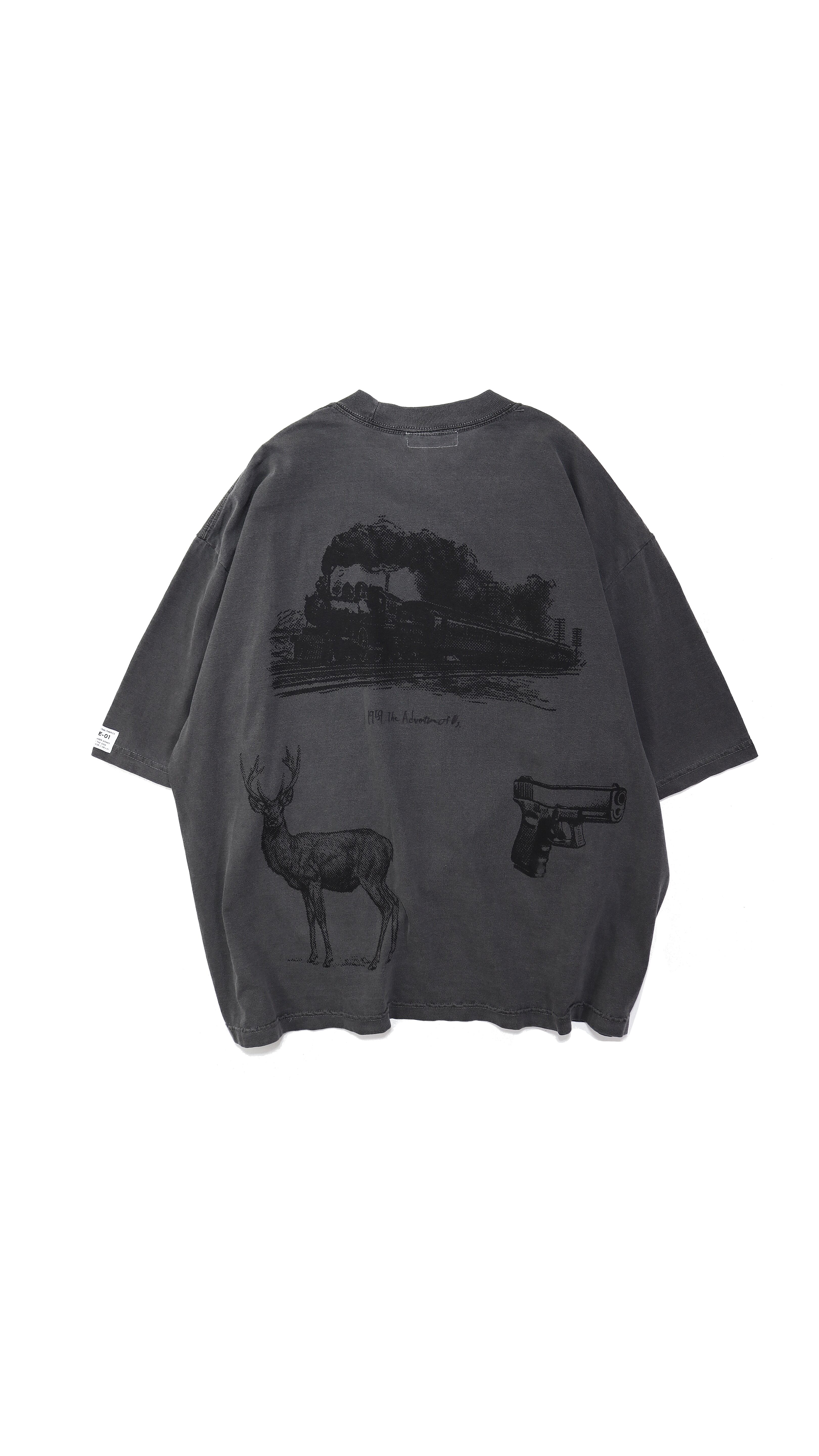 グラフィックは映画〈STAND BY ME〉から、あの夏の思い出をかき集め自分達でメモリアルTシャツを作った、という架空設定のデザイン。(※多少の色ブレ、サイズ寸法などは予めご了承ください)