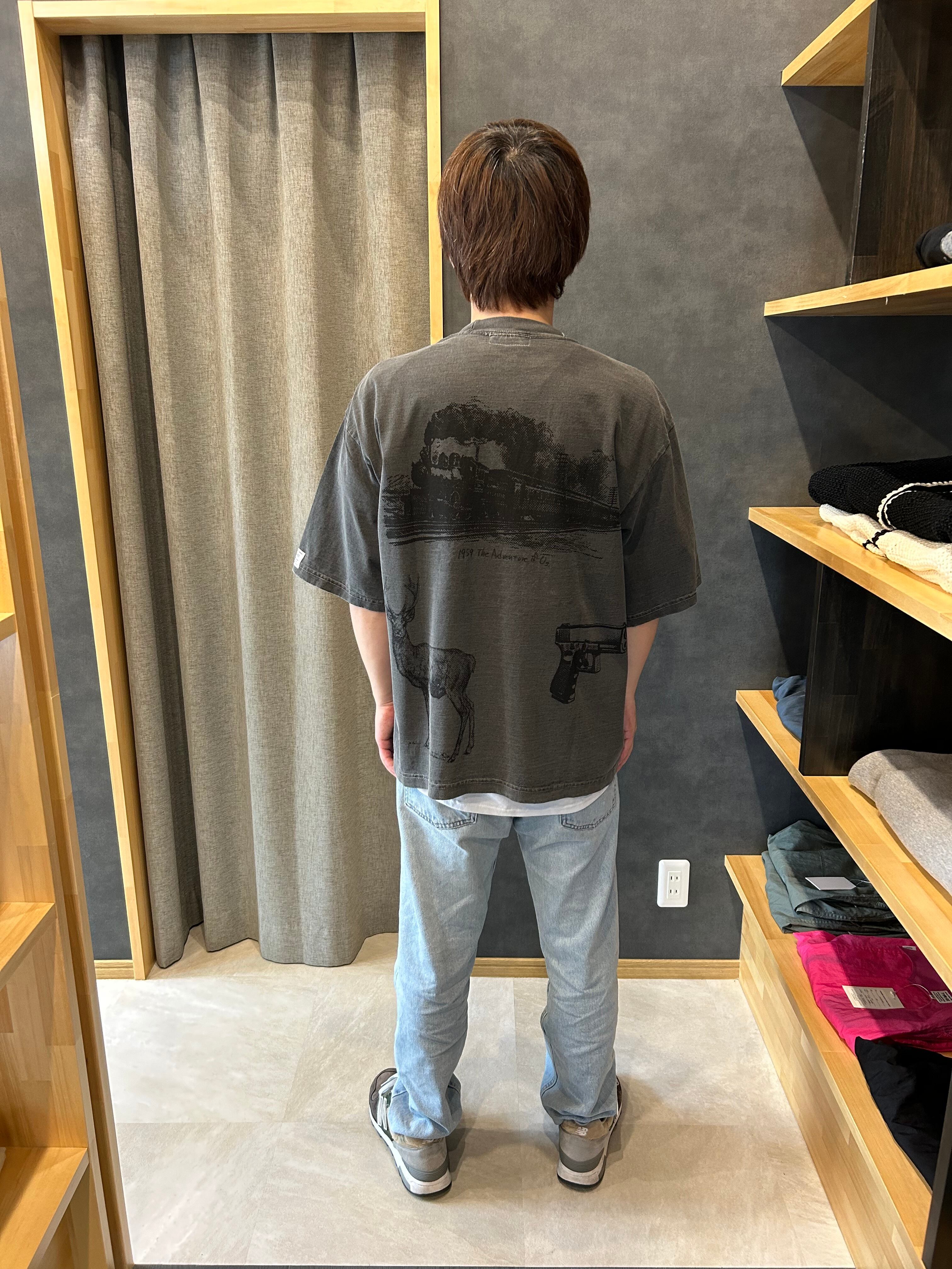ゆったりとした身幅、短めな着丈のボックスシルエットにヴィンテージの風合いを出す為、オーバーダイ、ハードウォッシュ加工を行い、適度なヨレ感を出しました。
