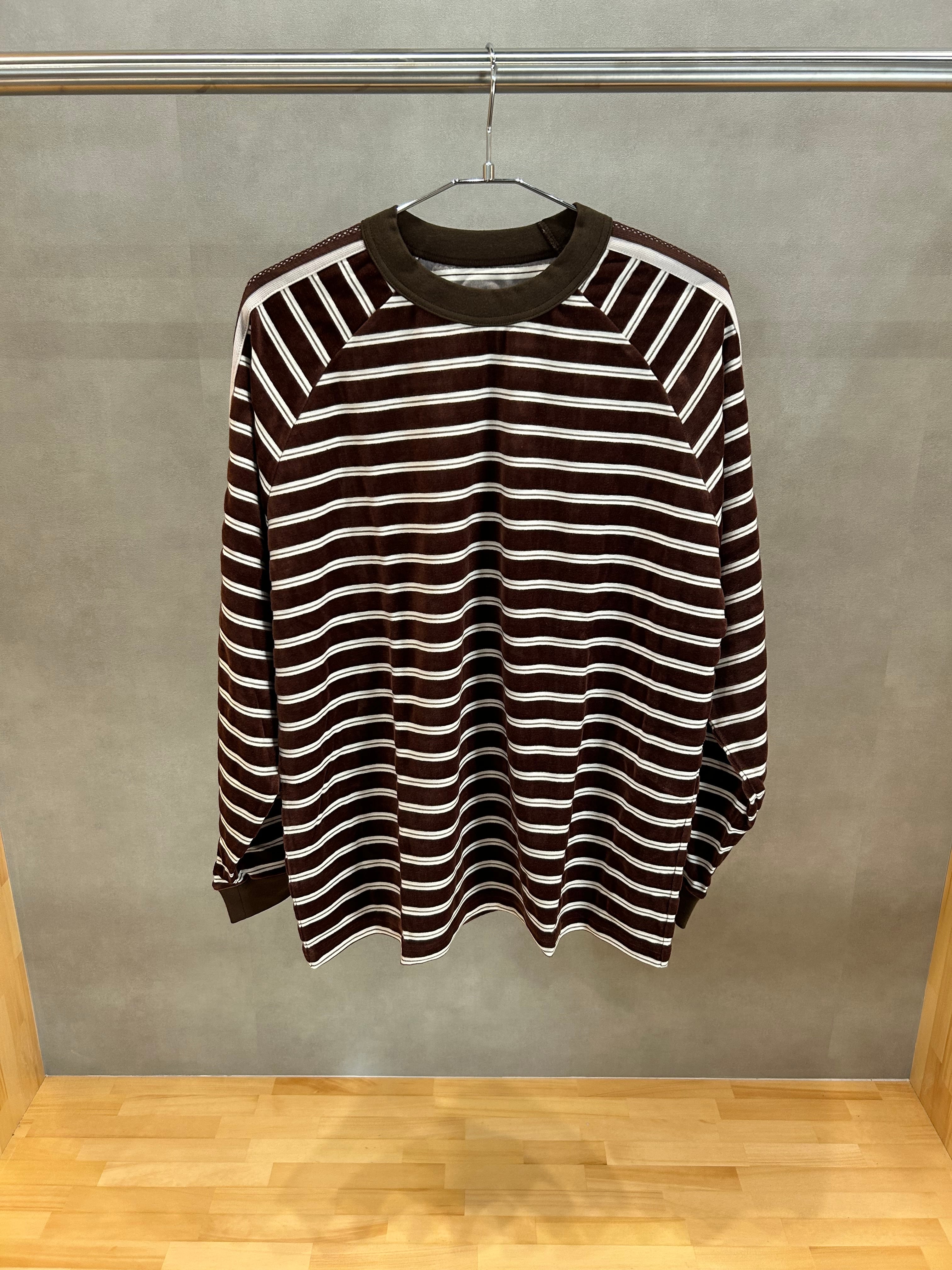 【 Sasquatchfabrix.】VELOUR BORDER CREWNECK SHIRT BROWN BORDER