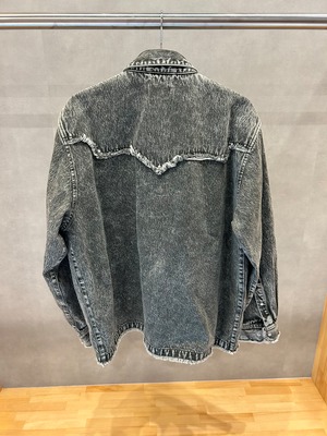 ヴィンテージのウエスタンシャツから着想を得た、デニムジャケット。シャツとジャケットの間を狙ったデザインでシーズンを問わずに様々なスタイリングをお楽しみいただけます。フロントにはウエスタンを象徴するパールドットボタンを採用しています。部分的にメタルのリベットを打ち込むことで、高級感を演出し、他にはないパターンカッティングを強調させています。組下のパンツと合わせればセットアップとしてもスタイリングをお楽しみいただけます。